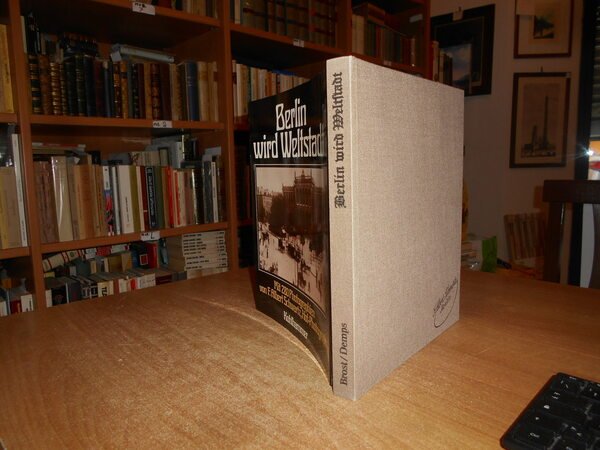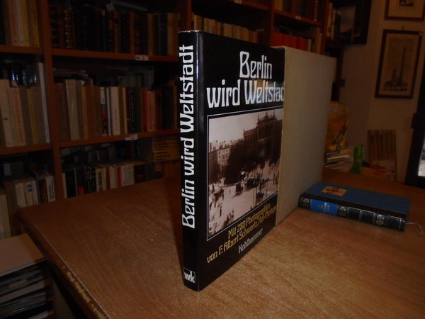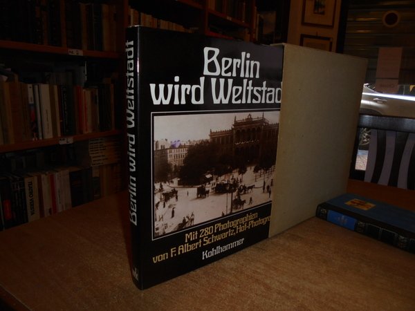 HARALD BROST und LAURENZ DEMPS. Printed in the German, Edition Leipzig, 1981. Berlin wird Weltstadt. In-4°, tela edit. con sovracopertina. 267 pp. con numerose illustrazioni fotografiche n.t. Mit 280 photographien von F. Albert Schwartz, Hof-Photograph. Come nuovo con astuccio in cartoncino muto. Testo in tedesco. Uff. B - III - 1 - 2 carc.