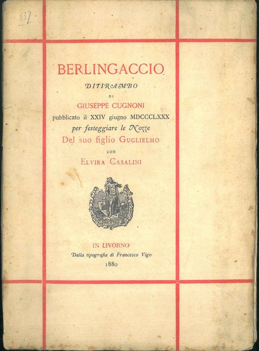 Berlingaccio, ditirambo di G. Cugnoni per festeggiare le nozze del suo figlio Guglielmo con Elvira Casalini.