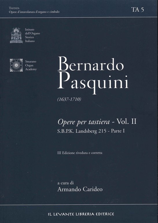 Bernardo Pasquini. TA 5 (1637-1710) Opere per tastiera vol.II