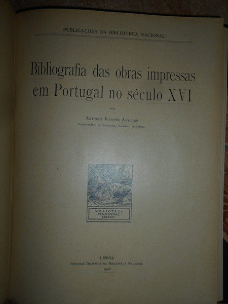 Antonio, Joaquim Anselmo. Lisboa, Oficinas Graficas da Biblioteca Nacional, 1926. BIBLIOGRAFIA das Obras impressas em Portugal no Século XVI.
