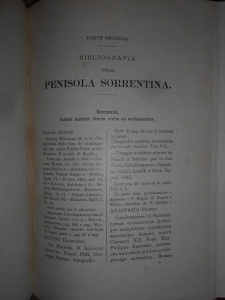 BIBLIOGRAFIA della Isola di Capri e della Penisola Sorrentina aggiuntavi la Bibliografia di Amalfi Salerno e Pesto.
