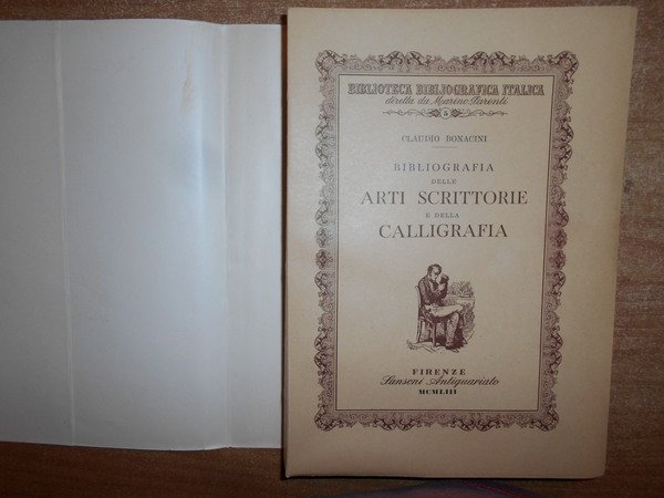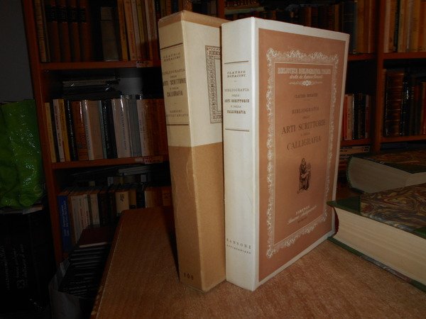 BONACINI, CLAUDIO. Firenze, Sansoni Antiquariato, 1953. Bibliografia delle Arti scrittorie e della Calligrafia. In-8°, cart. edit. con sovracopertina. 409, (2) pp. con riproduzioni nel testo. Ottimo esemplare conservato nell' astuccio originale. Neg. lett. mod. mob. C.