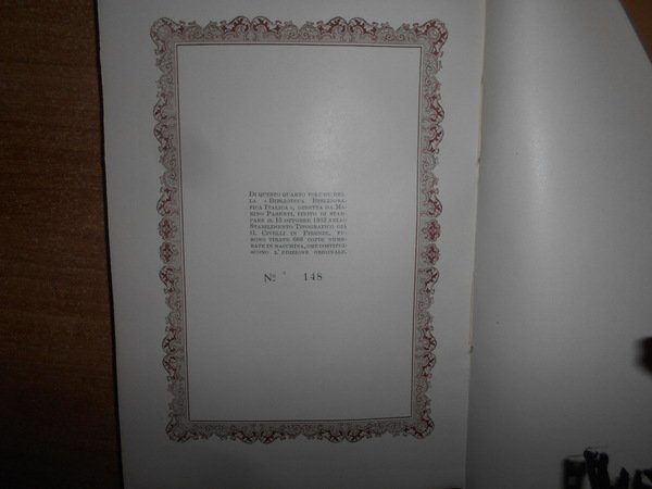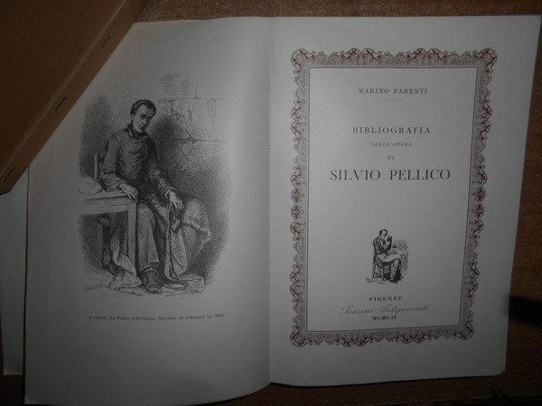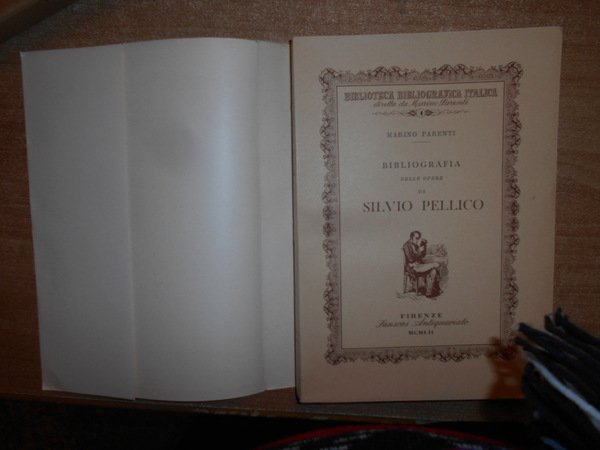 MARINO PARENTI. Firenze, Sansoni Antiquariato, 1952. BIBLIOGRAFIA DELLE OPERE DI SILVIO PELLICO. In-8° grande, cart. edit. con sovracopertina. 302, (2) pp. con numerose riproduzioni di frontespizi. Ottimo esemplare a fogli chiusi con astuccio edit. Uff. B - II - 5 - 2