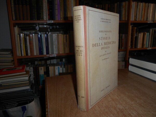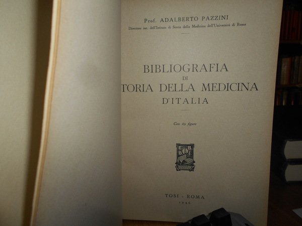 ADALBERTO PAZZINI. Roma, Tosi Editore, 1946. BIBLIOGRAFIA di STORIA della MEDICINA d' ITALIA. In-8°, tela edit. con titoli sul piano e al dorso. 455 pp. con 69 figure. In ottimo stato di conservazione. Uff. D - II - 4