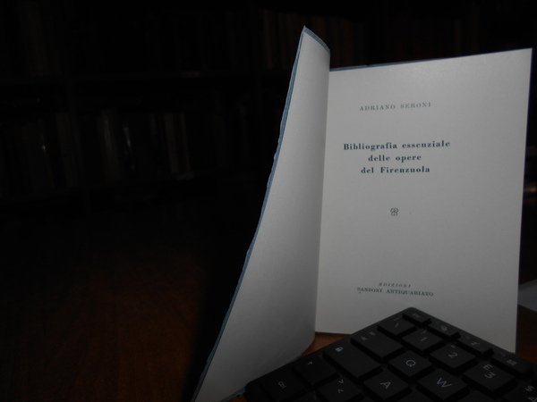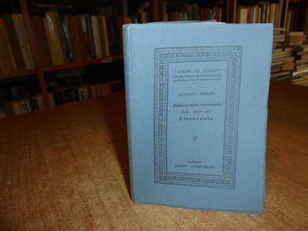 SERONI, ADRIANO. Firenze, Sansoni Antiquariato, 1957. BIBLIOGRAFIA ESSENZIALE DELLE OPERE DEL FIRENZUOLA. In-16°, br. edit. 59 pp. con alcuni fac-simili n.t. Esemplare N. 245 di 333, di cui 300 destinati alla vendita e 33 per gli omaggi e il servizio stampa. Esemplare in ottimo stato. Neg. scat. 3 opusc. nonn.