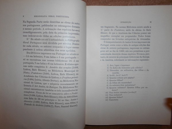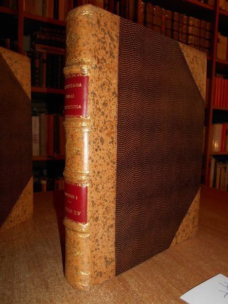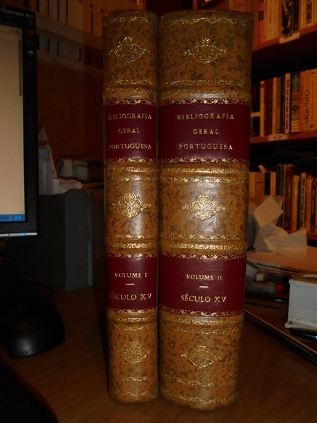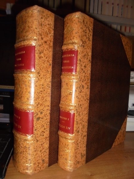BIBLIOGRAFIA Geral Portuguesa Século XV. Academia das Ciências de Lisboa 1941/42. Edizione originale. 2 volumi in-8° grande, m. pelle con grandi angoli, dorsi a nervi con fregi e titoli in oro, copertine originali conservate. I. c, (2), 399, (1) pp. con numerose illustrazioni nel testo. II. cxiv, 832 pp. con numerose illustrazioni nel testo. Esemplare come nuovo in bella legatura di pregio. Uff. E - I - 1