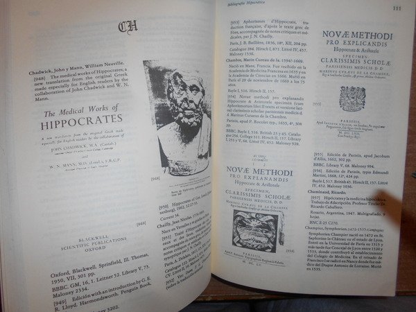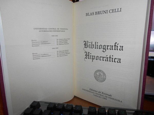 BLAS BRUNI CELLI. Caracas, Ediciones del Rectorado Universidad Central de Venezuela, 1984. Bibliografia Hipocratica. In-8°, tela bordeaux con titolo in oro entro tassello al dorso, brossure originali conservate. 500, (7) pp. con numerose riproduzioni nel testo. Come nuovo. Uff. D - II - 2
