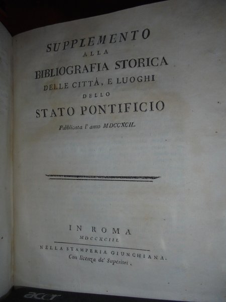 Bibliografia Storica delle città, e luoghi dello Stato Pontificio. Supplemento alla bibliografia Storica delle città, e luoghi dello Stato Pontificio