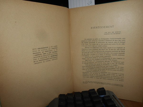 BIBLIOGRAPHIE FRANCO-PORTUGAISE. Essai d'une Bibliographie Chronologique de Livres Français sur le Portugal
