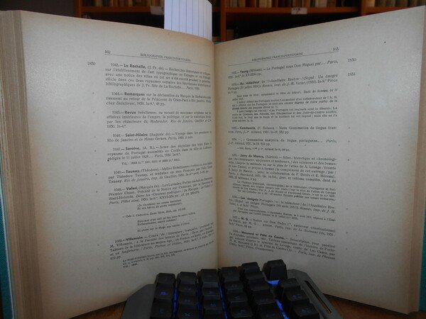 BERNARDO XAVIER. C. COUTINHO. Porto, Librairie Lopes Da Silva, Rua Cha, 1939. BIBLIOGRAPHIE FRANCO-PORTUGAISE. Essai d'une Bibliographie Chronologique de Livres Français sur le Portugal. In-8° grande, tela verde con titolo in oro entro tassello al dorso, copertine originali conservate. (vi), 409, (1) pp. Ottimo esemplare in legatura artigianale anni '60 con le brossure originali conservate. Uff. B - I - 6 - 2
