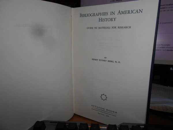 Henry Putney Beers. New York, Octagon Books, 1973. Bibliographies in American History. Guide to materials for research. In-8°, tela bleu con titolo in oro al dorso. xv, 487 pp. Come nuovo. Uff. B - III - 6