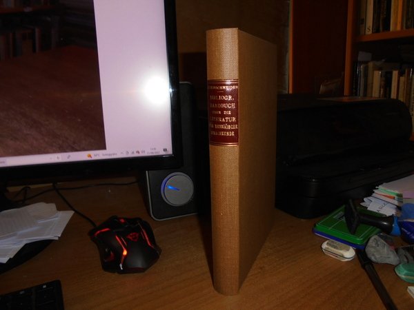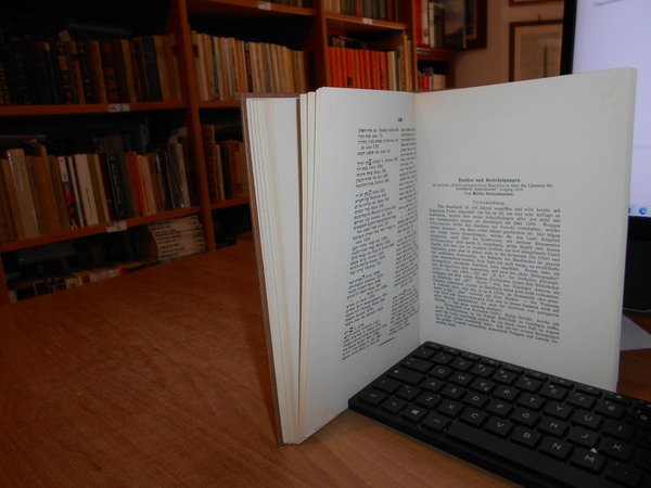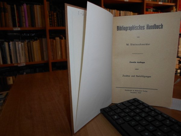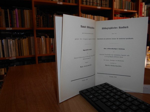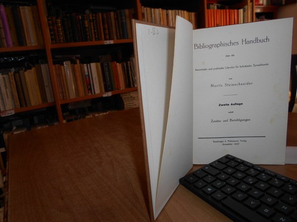 Von M. Steinschneider. Jerusalem, Bamberger & Wahrmann Verlag, 1937. Bibliographisches Handbuch über die theoretische und praktische Literatur für hebräische Sprachkunde. Zweite Auflage nebst Zusatze und Berichfigungen. In-8°, tela con titolo in oro entro tassello al dorso, copertine originali conservate. xxxvi, 160, 116 pp. Perfetto esemplare in legatura recente con le brossure originali conservate. Uff. E - IV - 2