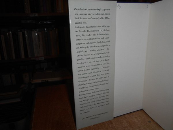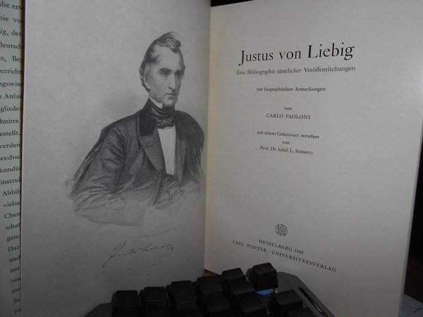 PAOLONI, Carlo. Justus von Liebig. Eine Bibliographie sämtlicher Veröffentlichungen. Mit biographischer Anmerkungen, mit einem Geleitwort versehen von L. Schmitt. Heidelberg, Carl Winter, 1968.