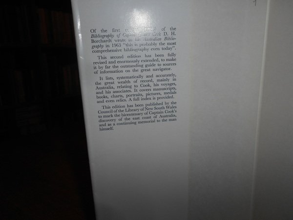 M. K. Beddie. Bibliography of Captain James Cook. R.N., F.R.S., Circumnavigator. Sidney, The Library of New South Wales, 1970. In-8°, tela azzurra con titolo in oro al dorso, sovracopertina ill. a col. xvi, 894 pp. Ottimo esemplare. Uff. B - III - 6