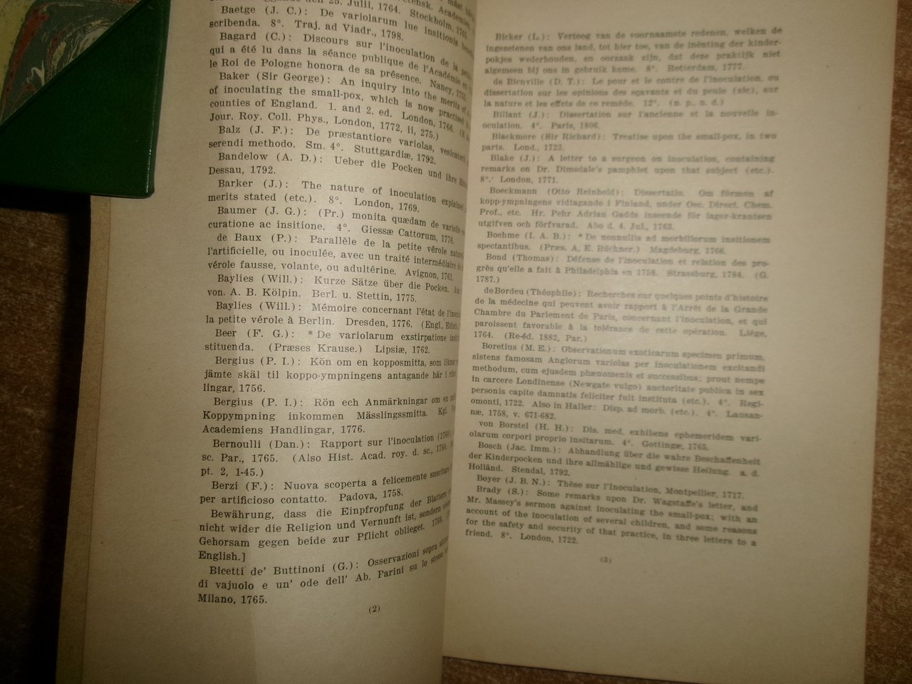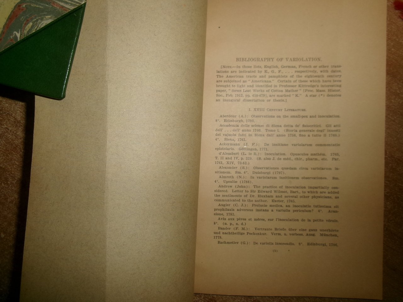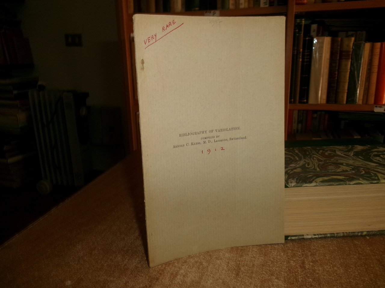 BIBLIOGRAPHY OF VARIOLATION compiled by ARNOLD C. KLERS. Lausanne, Switzerland, 1912. In-8°, br. 27 pp. Raro opuscolo in ottimo stato con testo in inglese. Neg. mob. F entro busta trasp.