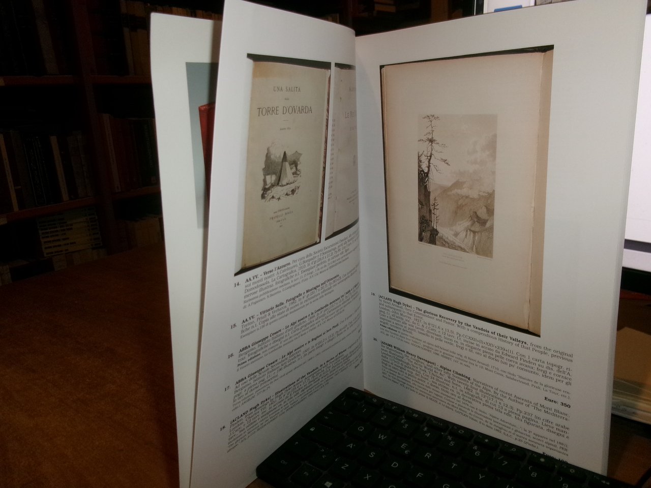 (Catalogo) BIBLIOTECA ALPINA. Torino, Libreria Antiquaria Piemontese, 2002. In-4°, cart. edit. ill. a col. 151 pp. con numerose illustrazioni a colori n.t e f.t. Accurata descrizione di 897 libri e stampe rare riguardanti le Alpi con prezzi in euro. Ottimo stato. Neg. mob. 19