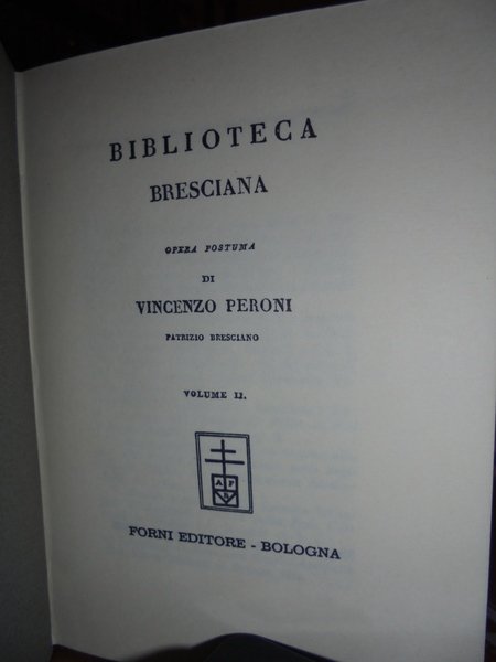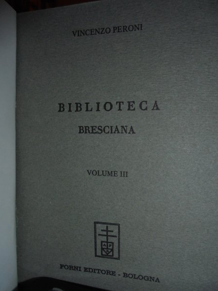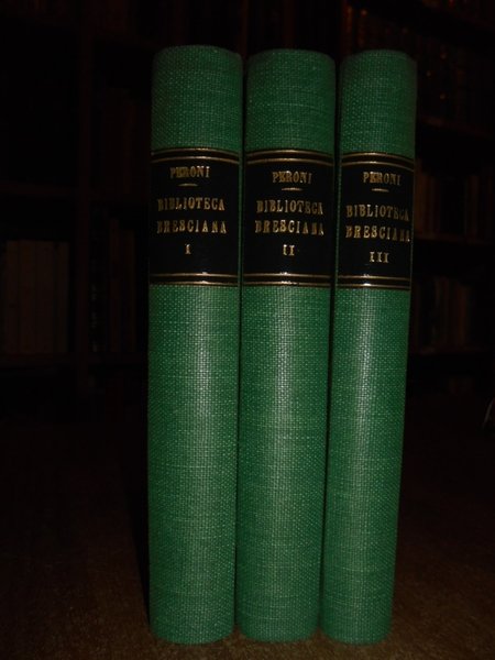 Vincenzo, Peroni. Bologna, Forni Editore, 1968. BIBLIOTECA Bresciana. 3 volumi in-16°, tela verde con titoli in oro entro tasselli ai dorsi, le copertine orig. sono conservate. 312 pp.; 309 pp.; 244 pp. Volumi come nuovi o nuovi. Neg. mens. mob. nero