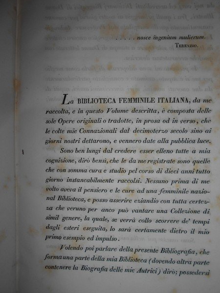 BIBLIOTECA FEMMINILE ITALIANA Raccolta Posseduta e descritta dal Conte Pietro Leopoldo Ferri