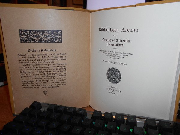 Bibliotheca Arcana seu Catalogus Librorum Penetralium. Brief notices of books that have been secretly printed, prohibited by law, seized, anathematised, burnt or Bowdlerised
