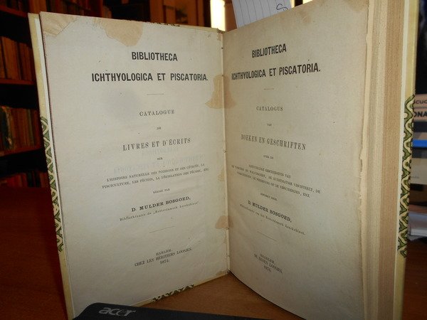 D. MULDER BOSGOED. Haarlem, De Erven Loosjes, 1874. BIBLIOTHECA ICHYOLOGICA ET PISCATORIA catalogus. In-8°, m. pergamena con larghe punte, titolo in oro al dorso. xxvi, 474 pp. Ottimo esemplare dell' edizione originale, Uff. D- I - 1