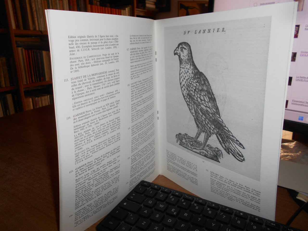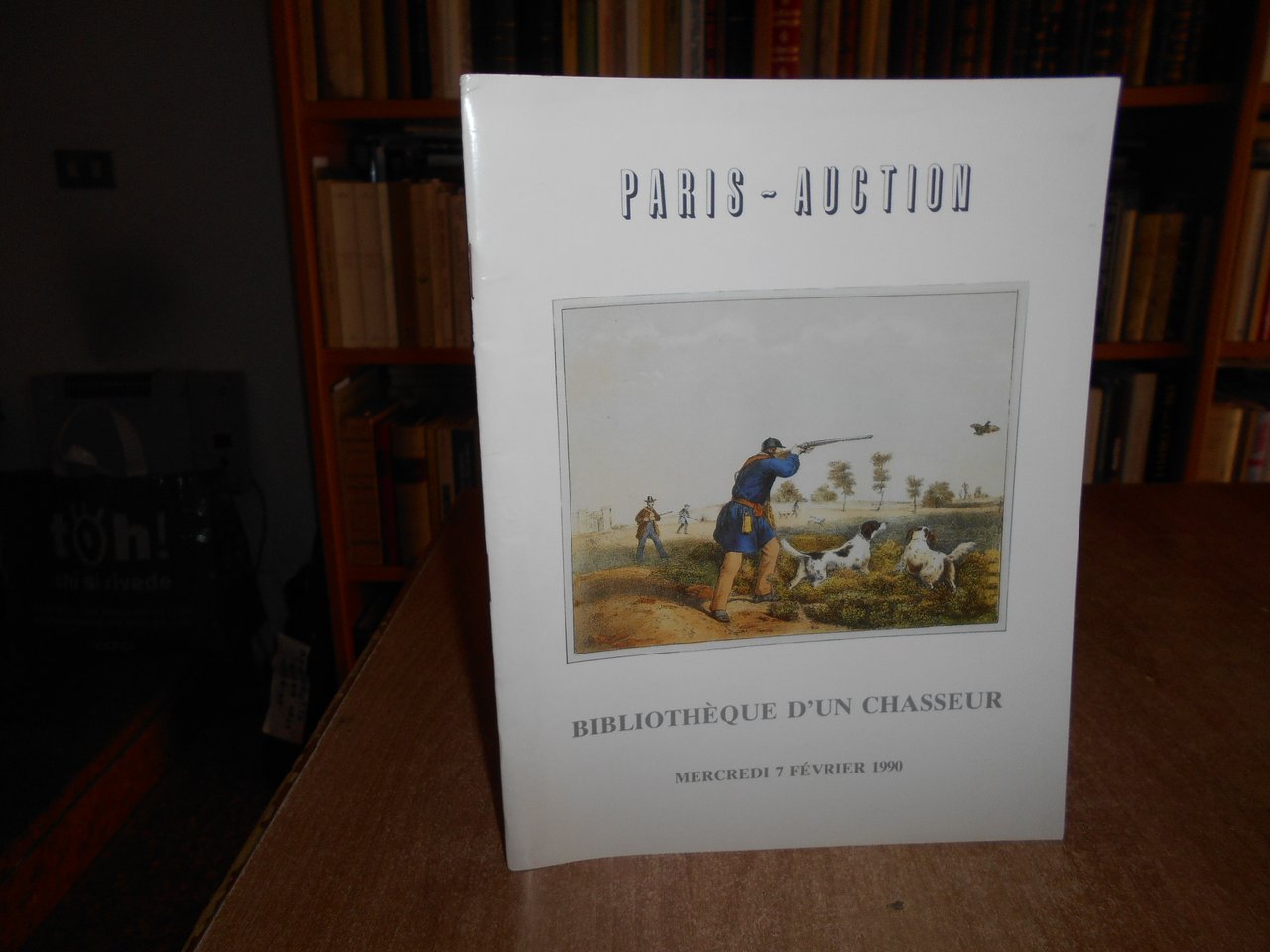Bibliothèque d' un Chasseur. PARIS - AUCTION 1990. Mercredi 7 Février, 1990. In-8°, cart. edit. ill. a col. con punti metallici. Accurata descrizione di 232 opere rare e antiche con alcune illustrazioni n.t. Come nuovo con testo in francese. Neg. mob. 19 entro busta trasp.