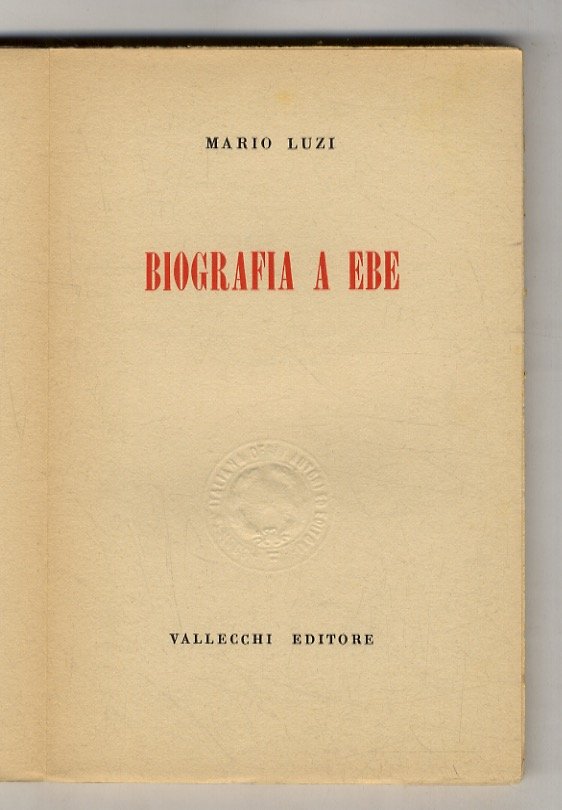 Firenze, Vallecchi Editore, 1942, in-8, br. editoriale, pp. 94, [6]. Prima edizione. Ottimo esemplare.
