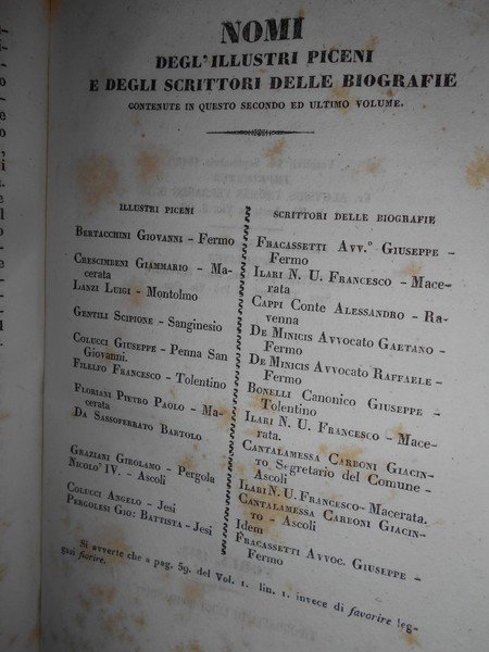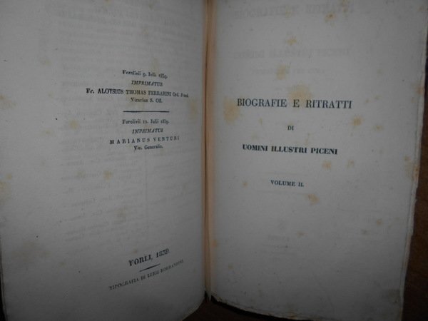 BIOGRAFIE e Ritratti di Uomini Illustri Piceni pubblicate del Conte Antonio Hercolani