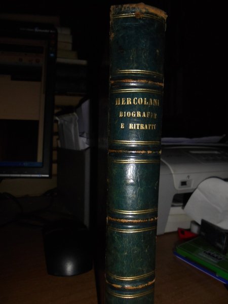 (Ascoli Piceno) Conte Antonio Hercolani. Forli con approvazione, 1837 - 1839. BIOGRAFIE e Ritratti di Uomini Illustri Piceni pubblicate del Conte Antonio Hercolani. 2 volumi legati assieme in-8°, m-pelle coeva, dorso a 4 nervi con fregi e titolo in oro. 194, (2) pp.; 155 pp. con numerosi ritratti incisi da vari autori. Leggere fioriture su poche pagine dovute alla qualità della carta, ma bell' esemplare in barbe. Neg. mob. 4