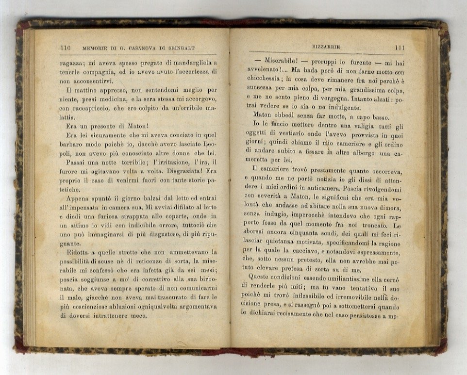 Roma, Edoardo Perino, 1886, in-16, legatura coeva in mezza pelle, pp. 251, [5]. Raro, ad oggi non censito in ICCU (ultimo accesso 24.12.2021). Alcune gore marginali, qualche traccia di usura esterna.