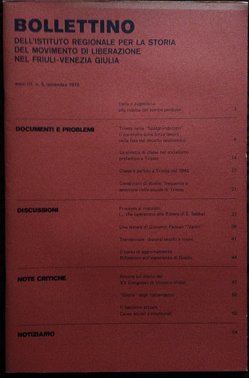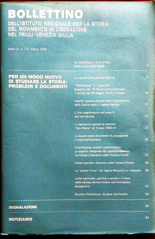 Bollettino dell' Istituto Regionale per la Storia del Movimento di Liberazione nel Friuli-Venezia Giulia. Anno III, N. 1/2, 3 1975. | Libri antichi e moderni |