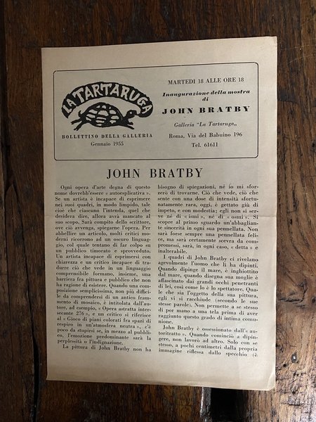 Bollettino dedicato alla mostra di John Bratby con inaugurazione a partire martedì 18 gennaio 1955