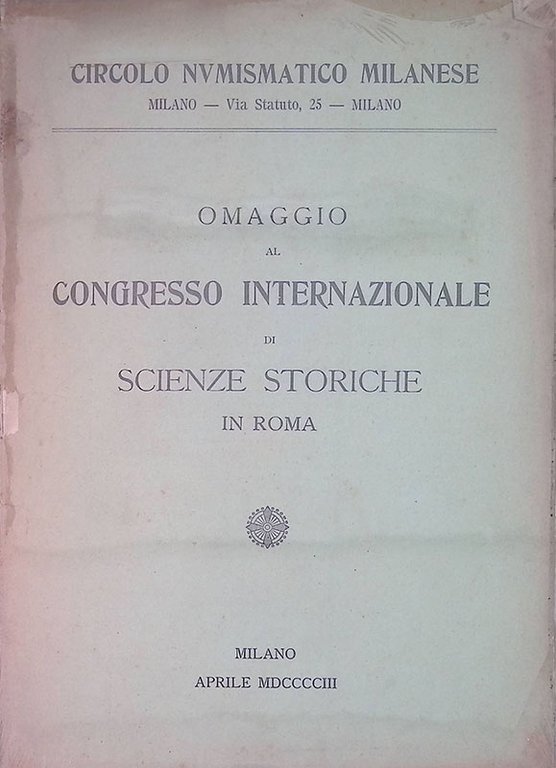 Periodico mensile del Circolo Numismatico Milanese. Con un'appendice archeologica e artistica. 20 p., f.to cm 24,5x17, copertina flessibile, rilegato con punto metallico, illustrazioni in b/n. Buone condizioni, copertina staccata.