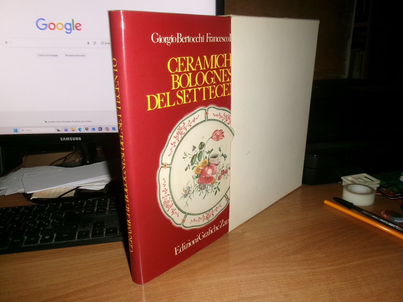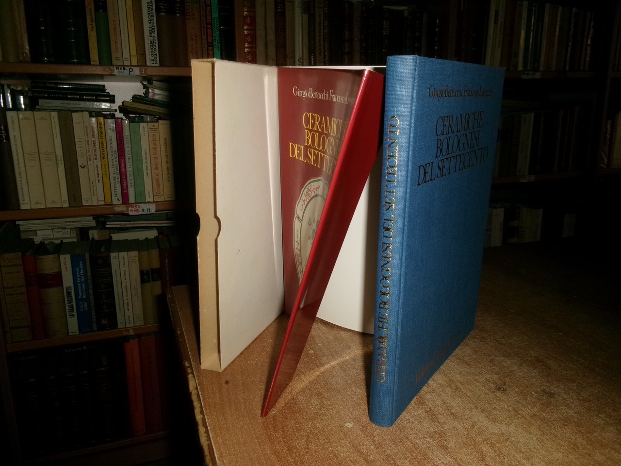 (Bologna) BERTOCCHI/LIVERANI. Ceramiche Bolognesi del Settecento. Bologna, Edizioni Grafiche Zanini, 1982. In-8° grande, tele bleu edit. con titoli in oro e sovracopertina ill. a col. 59 pp. di testo + tavole di documenti e 91 colori f.t. e indice. Ottimo stato con astuccio in cartoncino muto flessibile. Neg. mob. L