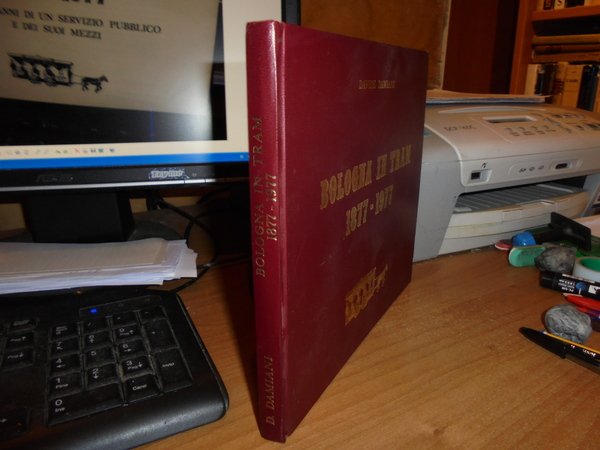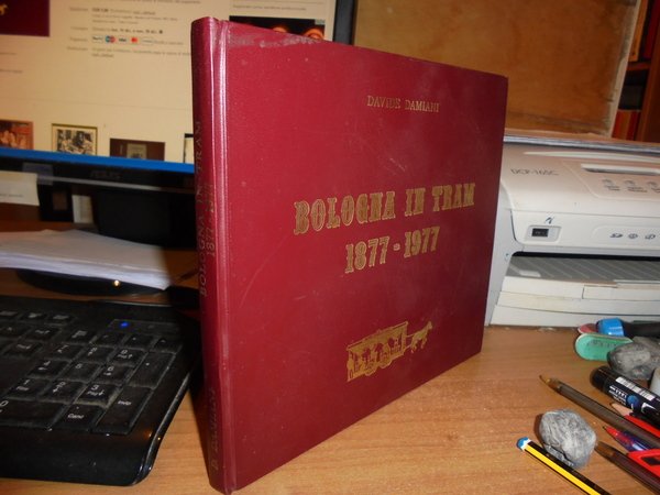 DAVIDE, DAMIANI. Bologna, Centro Stampa ATC, 1977. BOLOGNA in TRAM 1877 - 1977. In-8° oblungo, similpelle con titoli in oro sul piano e nel dorso. 142 pp. con numerose illustrazioni fotografiche in bianco e nero nel testo. Usato ben conservato. Neg. Bol. mob. 20 carc.