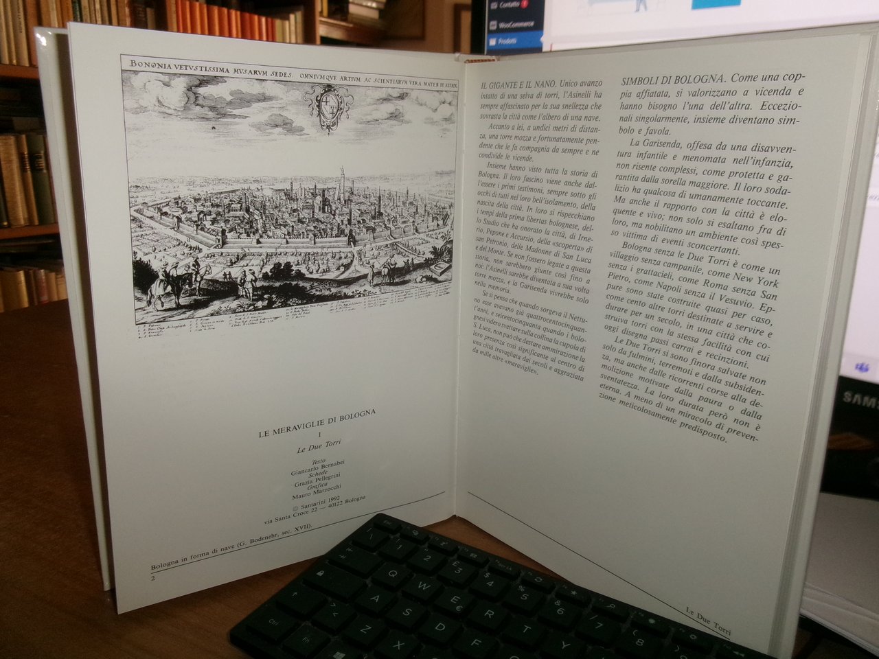 (Bologna) Le Meraviglie di Bologna. LE DUE TORRI Testo di Giancarlo Bernabei. Bologna, Santarini, 1992. In-8°, cartonato edit. illustrato. 160 pp. con numerose illustrazioni e immagini fotografiche in bianco e nero n.t. Come nuovo. Neg. mob. bianco comput.