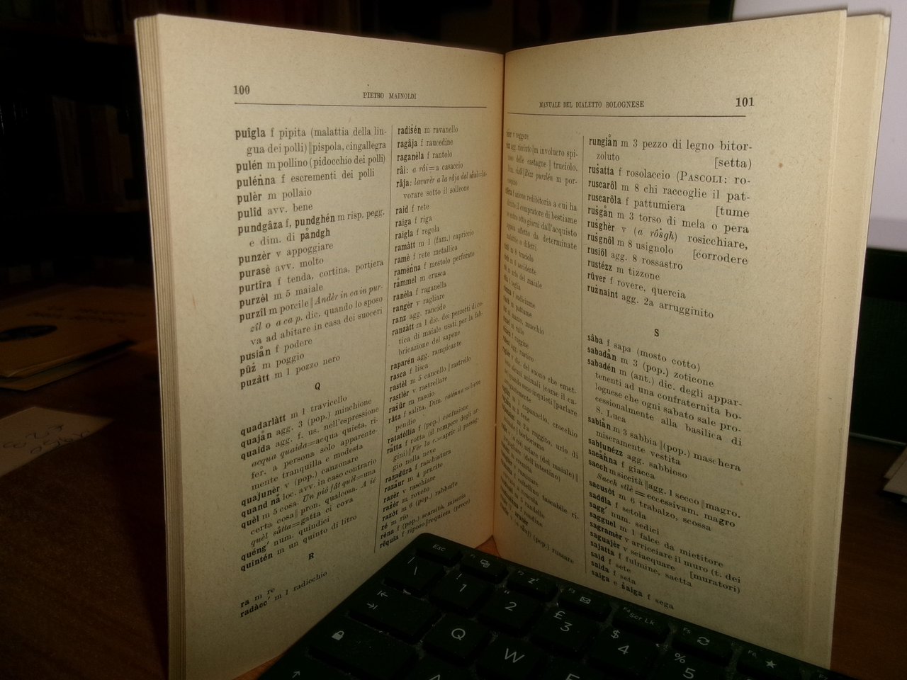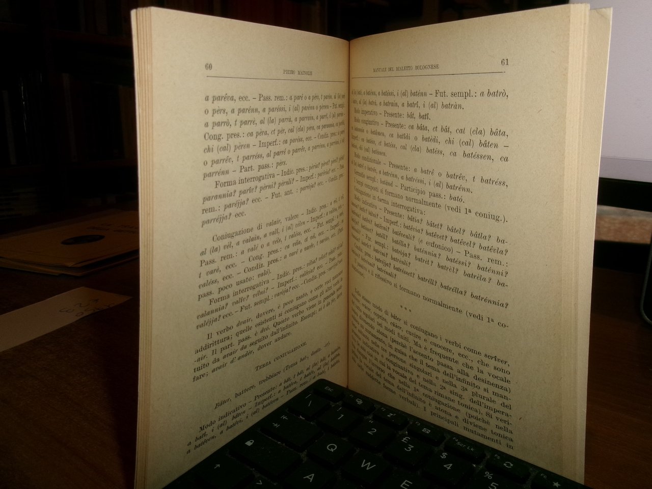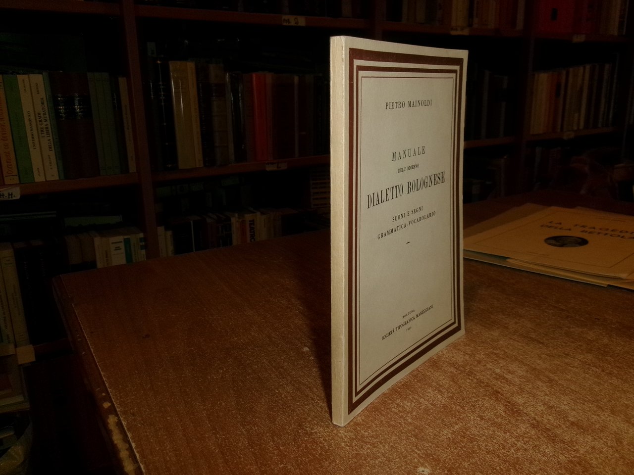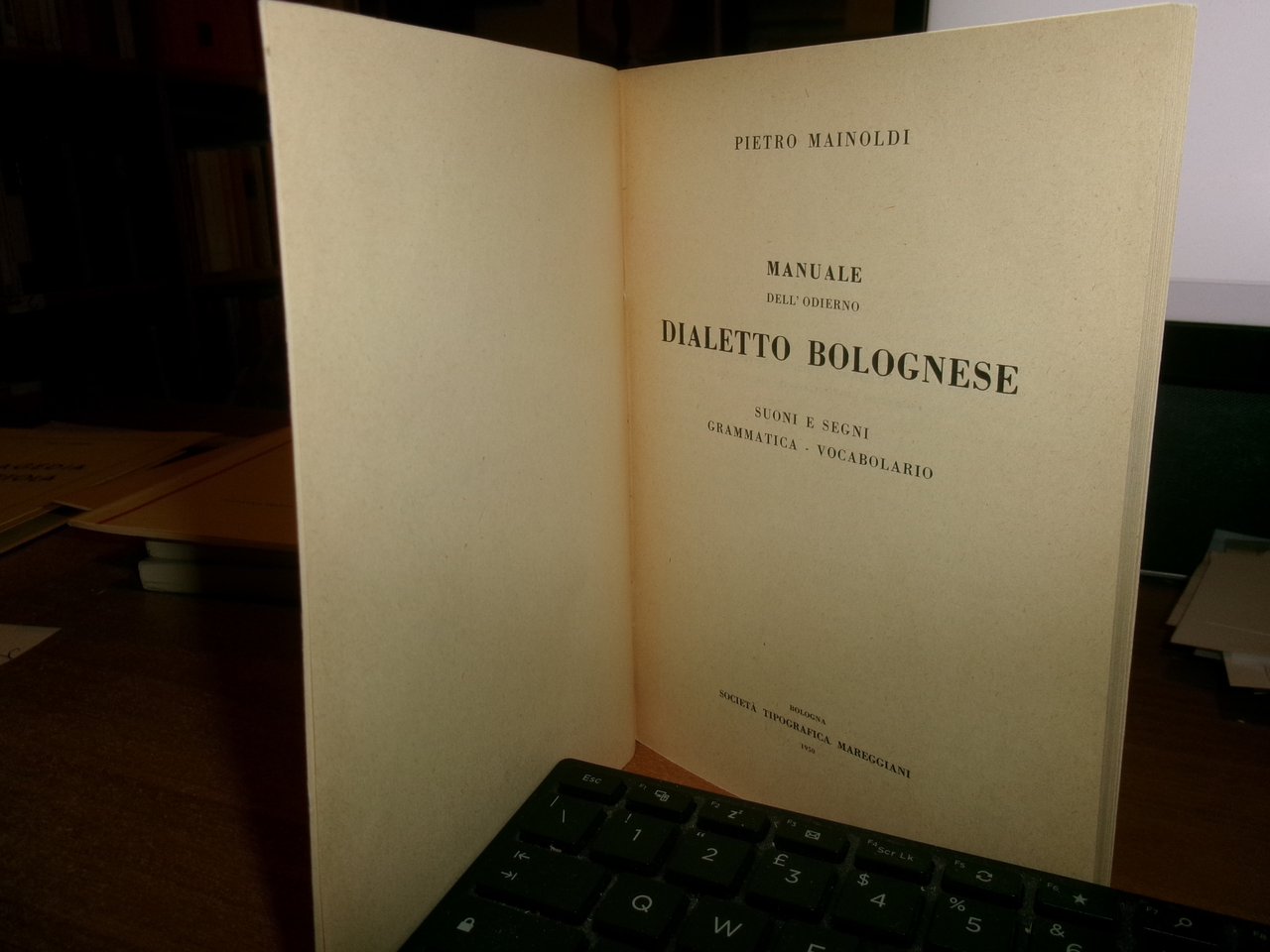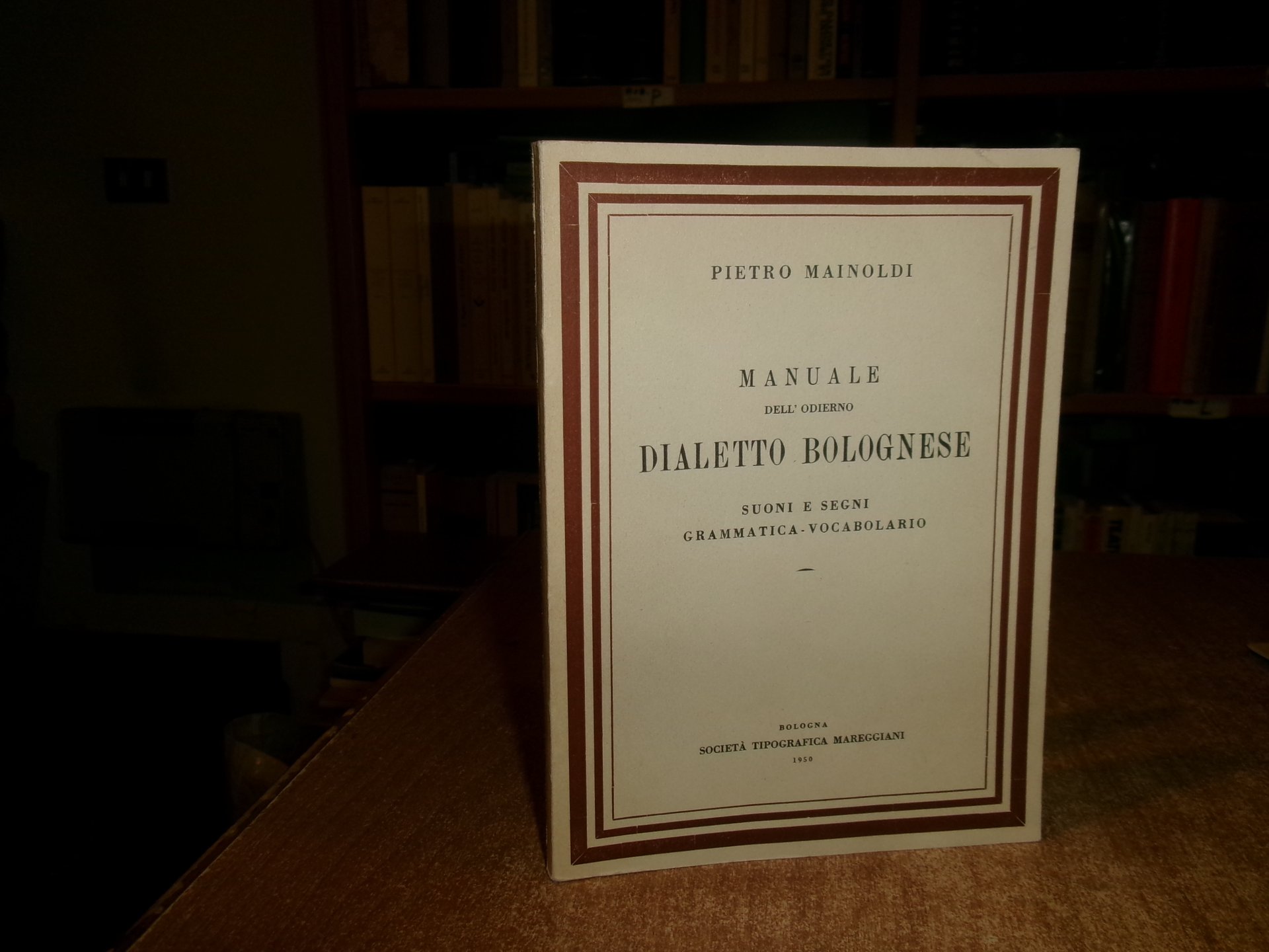 (Bologna) PIETRO MAINOLDI. Bologna, Società Tipografica Mareggiani, 1950. Manuale dell' odierno DIALETTO BOLOGNESE. Suoni e segni grammatica - vocabolario. Edizione originale. In-16°, br. edit. vii, 126 pp. In ottimo stato. Neg. Bol. mob. S entro busta trasp.