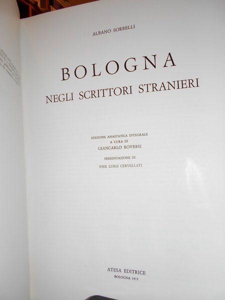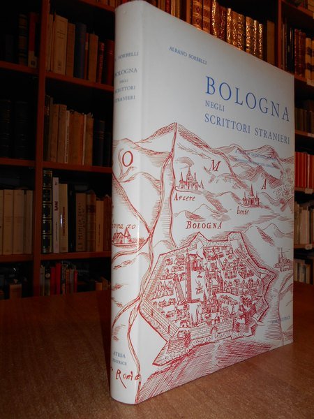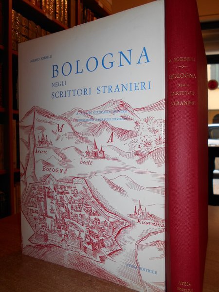 A cura di Giancarlo Roversi. Presentazione di Pier Luigi Cervellati. Bologna, Atesa Editrice, 1973. BOLOGNA negli scrittori stranieri. In-4° piccolo, tela edit. rossa con titoli in oro al dorso, sovracopertina ill. a col. ix, (3), 391, (5) pp. non numerate. Con innumerevoli illustrazioni in bianco e nero n.t. ad alcune tavole f.t. Esemplare in ottimo stato di conservazione o come nuovo. Uff. prima stanz.