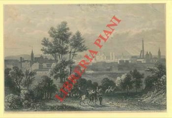 Incisione metà '800 c.a di cm. 16 x 10,5, animata (persone a cavallo e la città sullo sfondo). Senza margini.