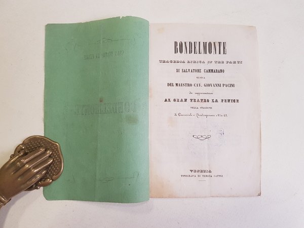 Bondelmonte. Tragedia lirica in tre parti di Salvatore Cammarano. Musica del Maestro Cav. Giovanni Pacini.