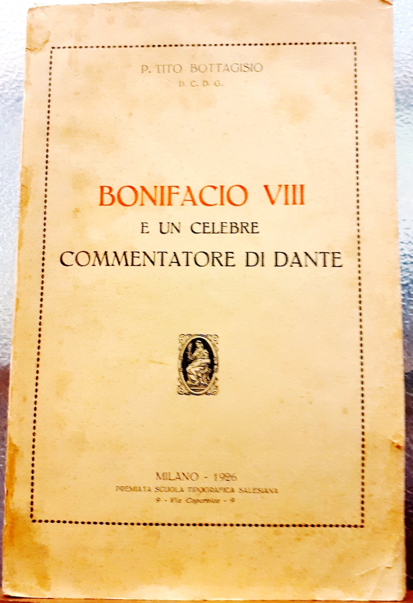BONIFACIO VIII E UN CELEBRE COMMENTATORE DI DANTE. Opera in gran parte composta su documenti dell'Archivio vaticano nuovamente e criticamente discussi.