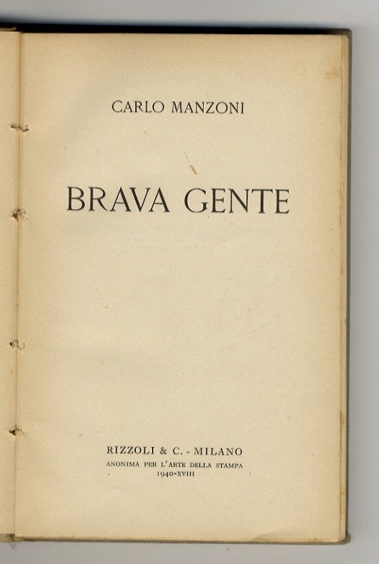 Milano, Rizzoli & C., 1940, in-16, cartonatura editoriale con il dorso in tela, pp. 184, [6]. Prima edizione. Manca la sovraccoperta. Ex-libris e firma di possesso.