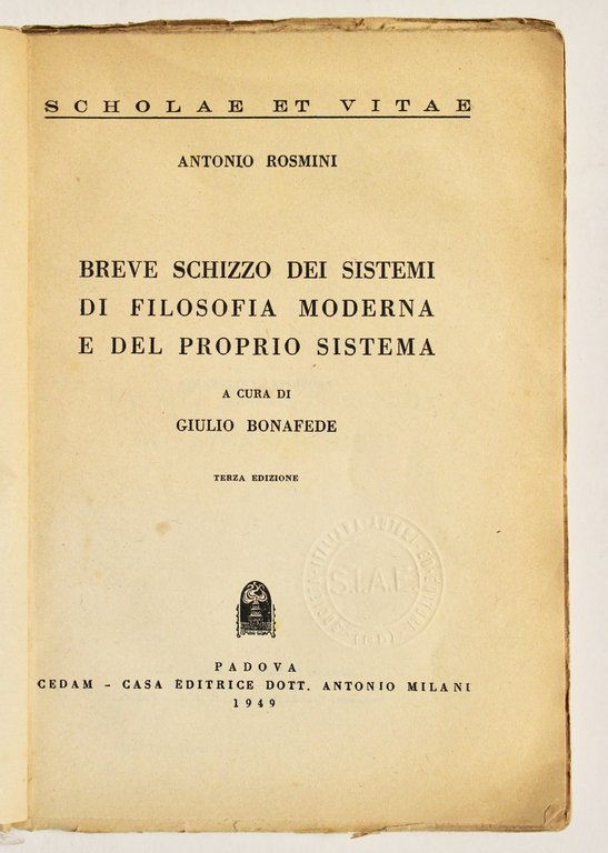 Breve schizzo dei sistemi di filosofia moderna e del proprio sistema.