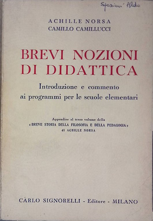 Brevi nozioni di didattica. Introduzione e commento ai programmi per le scuole elementari