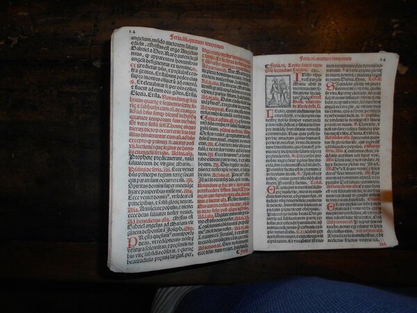 BREVIARIUM O.S.B.MONASTICUM RITUM ET MOREM MONACHORUM ORDINIS S. BENEDICTI DE OBSERVANTIA CASINENSIS CONGREGATIONIS ALIAS SANCTAE JUSTINAE DECTRETUM CAPITULI GENERALIS 1502 PER JULIUM II PONT. MAX. VI CAL. FEB. 1506 CONFIRMATUM. Venetiis, 1560 (explicit:) apud heredes Lucae Antonii Juntae. IN 4, ° PERGAMENA MOLLE COEVA STANCA (CON QUALCHE STRAPPO ED ANGOLI ARICCIATI). 355 ff. MAL NUMERATI (=351), 1 F. BIANCO ( INCOLLATO ALLA LEGATURA), SEGN. + 4, ++ 6, a- y 4, z2, aa-gg4, hh6, ii-yy 4, zz6, aaa-fff4, ggg6. TESTO COMPLETAMENTE STAMPATO IN CARATTERE SEMIGOTICO ROSSO E NERO. NUMEROSE INIZIALI ORNATE, PICCOLE FIGURE E 10 BELLE SILOGRAFIE A PIENA PAGINA (LE PRIME DUE RIFILATE IN BASSO DAL LEGATORE, LE ALTRE RIPIEGATE). MANCA IL F. 342 (SEGN.UU 2). ESEMPLARE CORTO DI MARGINE DI ECCEZIONALE RARITÀ. BOHATTA, BIBLIOGRAPHIE DER BREVIERE, 1262. CAMERINI, ANNALI DEI GIUNTI - VENEZIA, 640. "QUESTO BREVIARIO È SEGNATO NEL VECCHIO CATALOGO DELLA BIBLIOTECA CASANETENSE DI ROMA: MA NON SI TROVA PIÙ. BOHATTA ED ESSLING A QUELLA COPIA SI RIFERISCONO". In buono stato di conservazione. VENDIBILE solo in ITALIA.