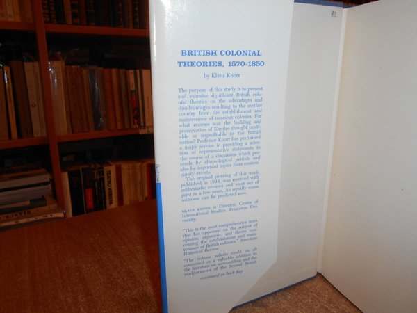 KLAUS E. KNORR. University of Toronto Press (Frank Cass & Co.), 1968. British Colonial Theories 1570-1850. With a foreword by H.A. Innis. In-8°, tela azzurra con titoli in oro al dorso, sovracopertina. xix, 429 pp. Ottimo esemplare. Uff. B - III - 4 - 2