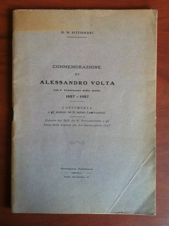 Brossura Originale Commemorazione di ALESSANDRO VOLTAG.M. SittignaiOmaggio dell'autore con firma autografa32 pagine - Formato 16,5x23,5 cmin ottimo stato (70 g)E15959