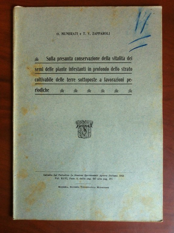 Brossura originaleSulla presunta conservazione della vitalità dei semi delle piante infestanti in profondo dello strato coltivabile delle terre sottoposte a lavorazioni periodicheO. Munerati, T.V. Zapparoli191327 pagine - formato 17x24,5 cmin ottime condizioni (50 g)E17839