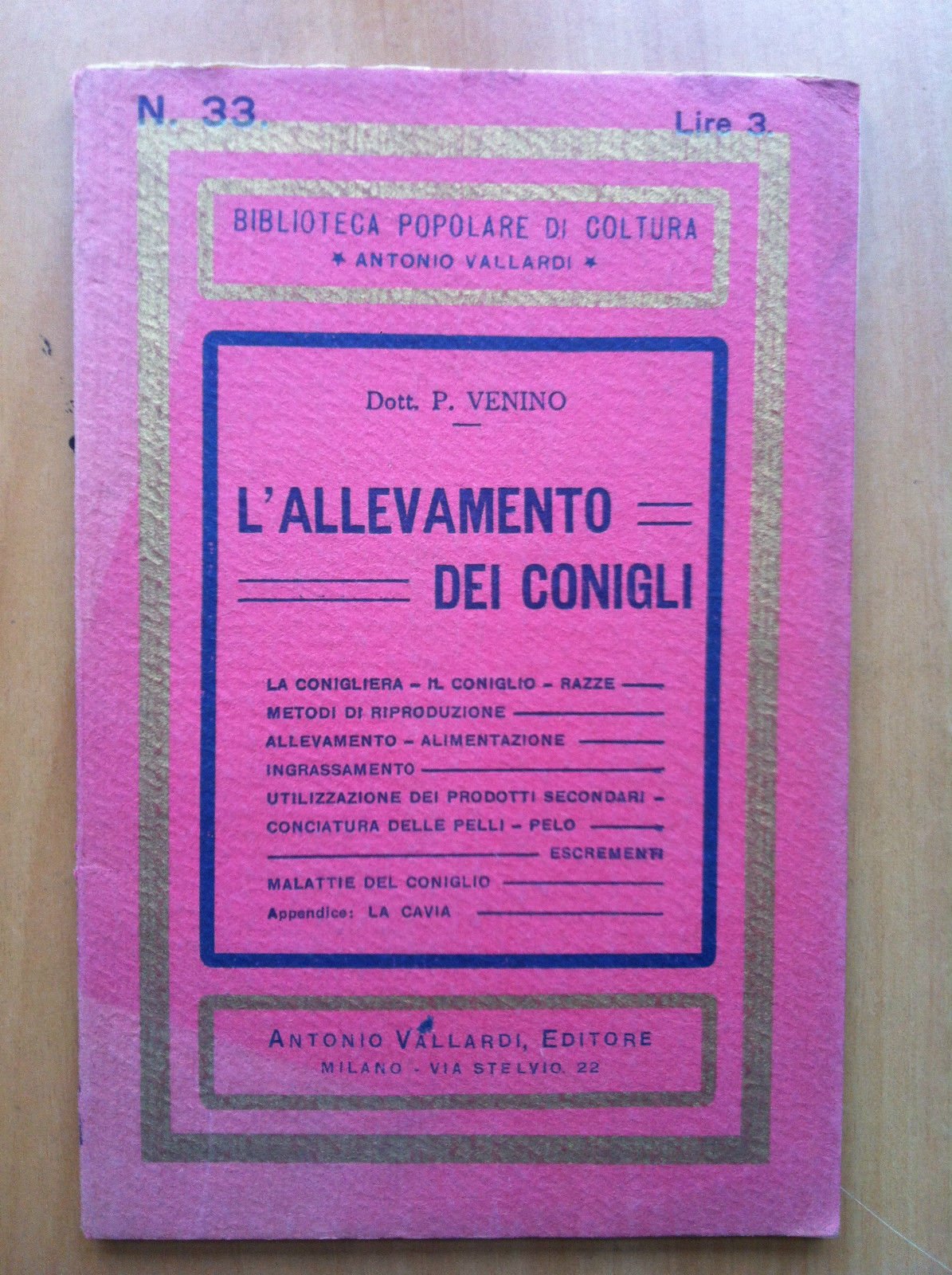 L'ALLEVAMENTO DEI CONIGLIDott. P. VeninoBiblioteca popolare di coltura Antonio Vallardi 1931112 pagine - formato 12x18 cmin ottimo stato (80 g)E15881