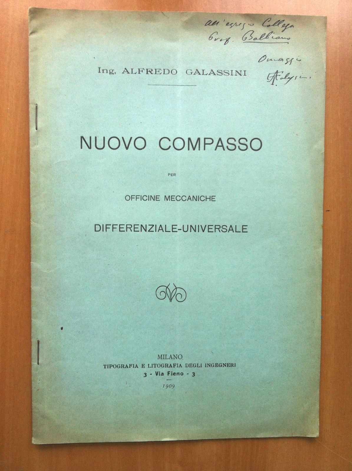 NUOVO COMPASSOPER OFFICINE MECCANICHE DIFFERENZIALE-UNIVERSALEIng. Alfredo GalassiniMilano 190917 pagine ed 1 tavola - formato 17x25 cmin ottimo stato (45 g)E15884