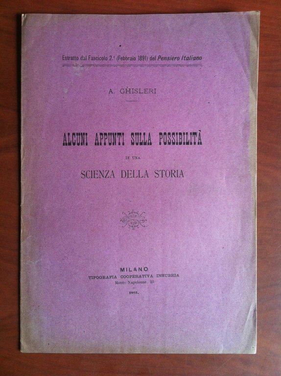 Brossura Sulla possibilità di una scienza della storia A. Ghisleri 1891 - E18682